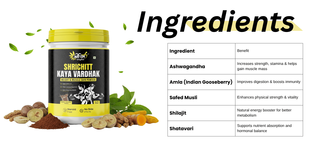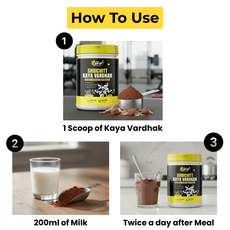 Kaya Vardhak un logon ke liye hai jo healthy weight aur muscle mass gain karna chahte hain — especially those who are underweight, low appetite, or want visible physique improvement.